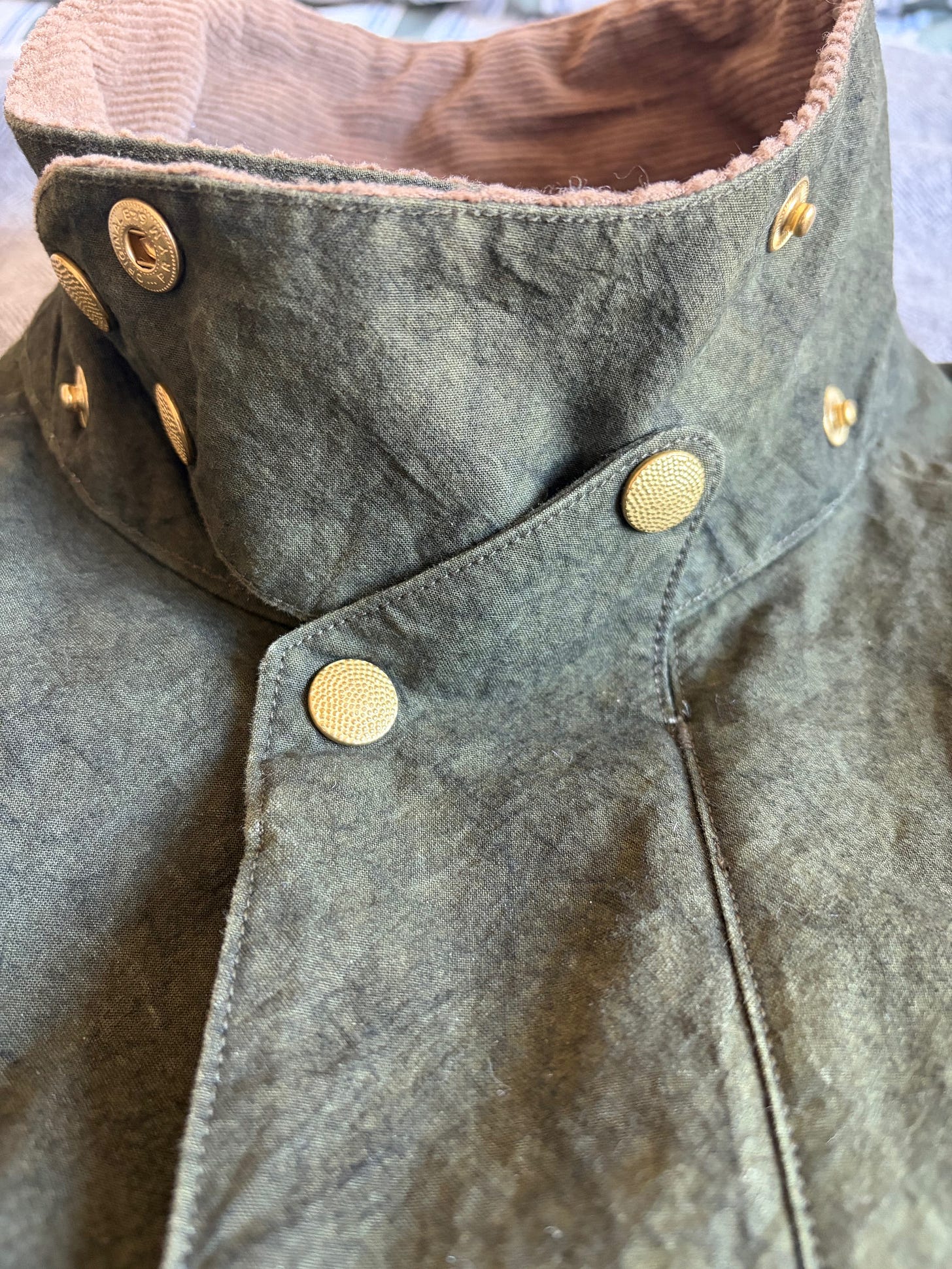 Nonobstant, je n’aime pas le coton ciré. Depuis toujours l’homme a cherché à se protéger des éléments. Les marins utilisaient il y a des siècles des toiles de lin huilées, l’ajout du corps gras permettant d’augmenter leur imperméabilité. Le coton ciré, c’est un peu l’évolution, avec du coton (la matière du XIXᵉ siècle) et de la cire. Comme souvent il aura fallu un peu de temps pour qu’il devienne populaire dans le civil, et c’est au début du XXᵉ qu'on le retrouve dans les vestes de chasse. Cela n’a pas empêché la quête d’une meilleure matière technique de continuer : la gabardine de Thomas Burberry, le coton ventile de la RAF (aujourd’hui tristement fabriqué en Égypte sous pavillon suisse, les marques anglaises qui l’utilisent ferment les yeux très fort) sont deux exemples ou l’on pense plutôt densité de tissage, tous deux dans la première moitié du XXᵉ, puis par la suite les matières synthétiques, les membranes, le gore tex, bref, tout le tralala moderne.