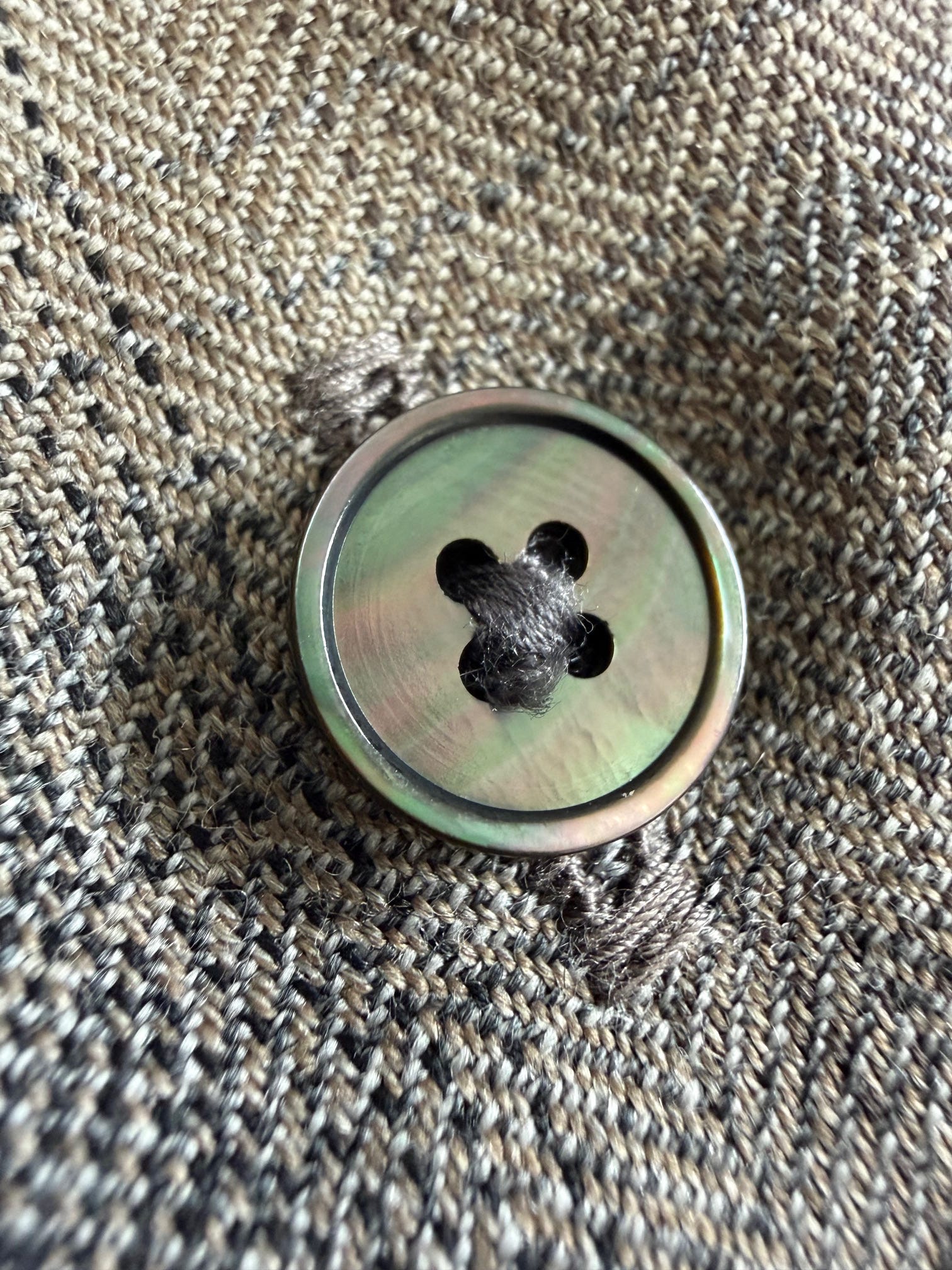 Trop de marque tendent à n’utiliser que de la nacre blanche par soucis de simplicité. Ici on a du nacre noir, soit la couleur qui va avec la matière. On apprécie. Belle qualité de bouton, beau nacré, épaisseur satisfaisante (pas trop fine cheap ni trop épaisse.)
