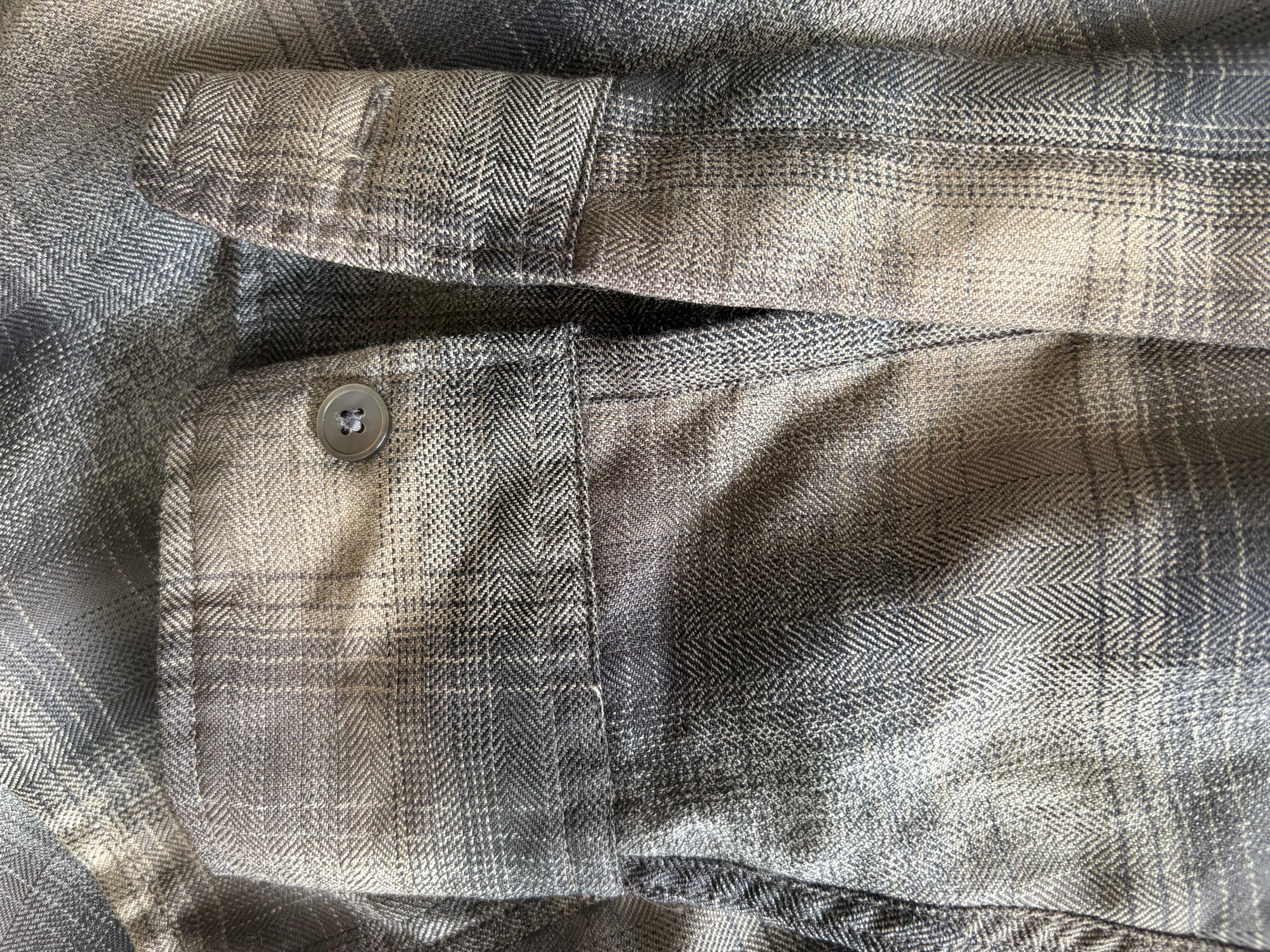 Auralee fait sérieux à tout les niveaux : boutonnières au poil, boutons bien accrochés, pattern matching sur la poche (le seul vraiment indispensable) ET les côtés (appréciable), une chemise basique mieux faite et surtout plus intelligemment faite que bien des pièces “sartoriales”. RAS sur la durabilité : aucune casse coté boutons, aucune usure excessive constatée, aucune décoloration de la teinture. Autant de choses impossibles à vérifier sans la porter !