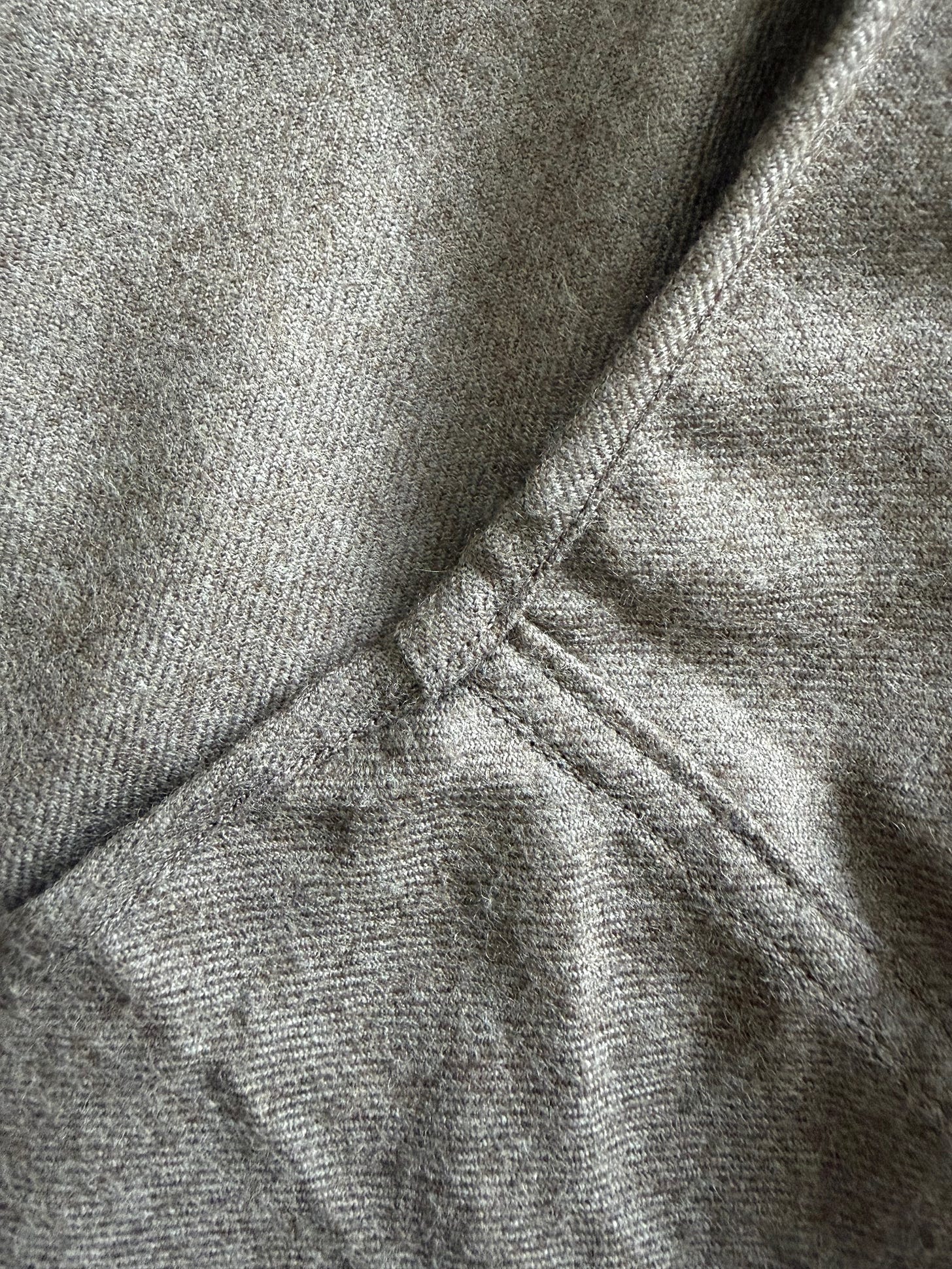 La laine ensuite. Déjà, c’est de la laine. Ce n’est pas si courant, surtout en Europe ou les marques sont réticentes à utiliser une telle matière, chère et réputée fragile. La laine, ça veut dire une main un peu différente du coton (la chemise unie est une flanelle grattée, la chemise à carreaux est plus froide), et surtout un drapé vraiment différent. Plus prosaïquement on bénéficie des qualités intrinsèques de la laine en terme de chaleur et de non rétention des odeurs.